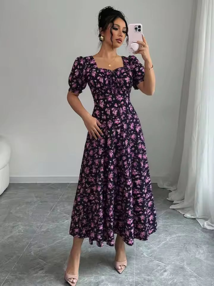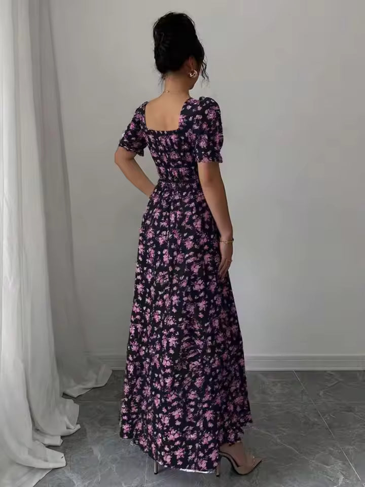 La robe maxi fleurie noire pour femme allie élégance et décontraction, idéale pour la saison estivale. Son style fluide et raffiné en fait une pièce parfaite pour le quotidien comme pour les occasions estivales.