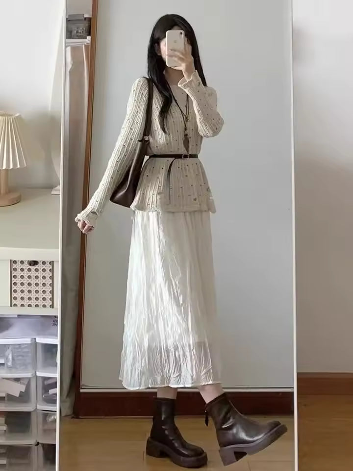 L’ensemble robe et jupe style coréen incarne un look doux, pur et élégant, parfait pour le début du printemps. Son esthétique milk sweet apporte fraîcheur et délicatesse.